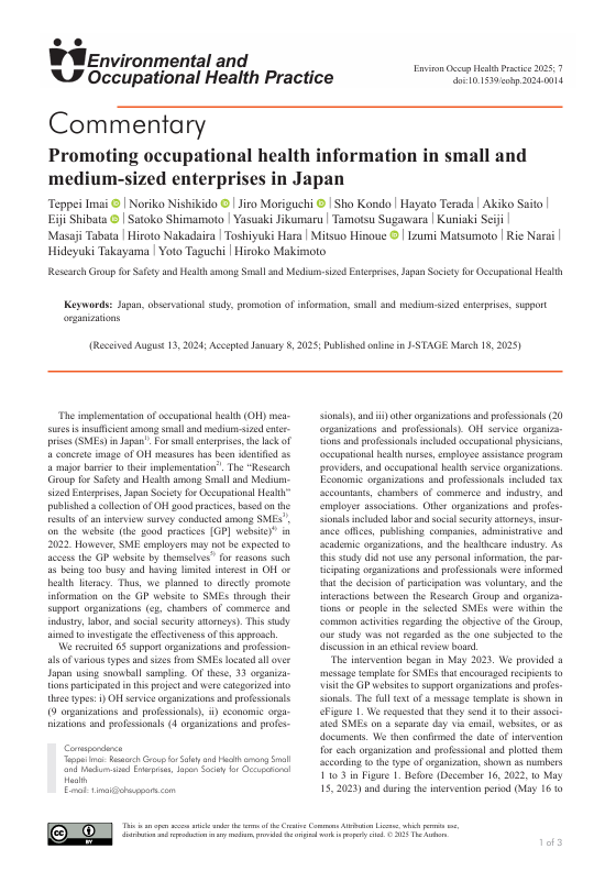 Promoting occupational health information in small and medium-sized enterprises in Japan