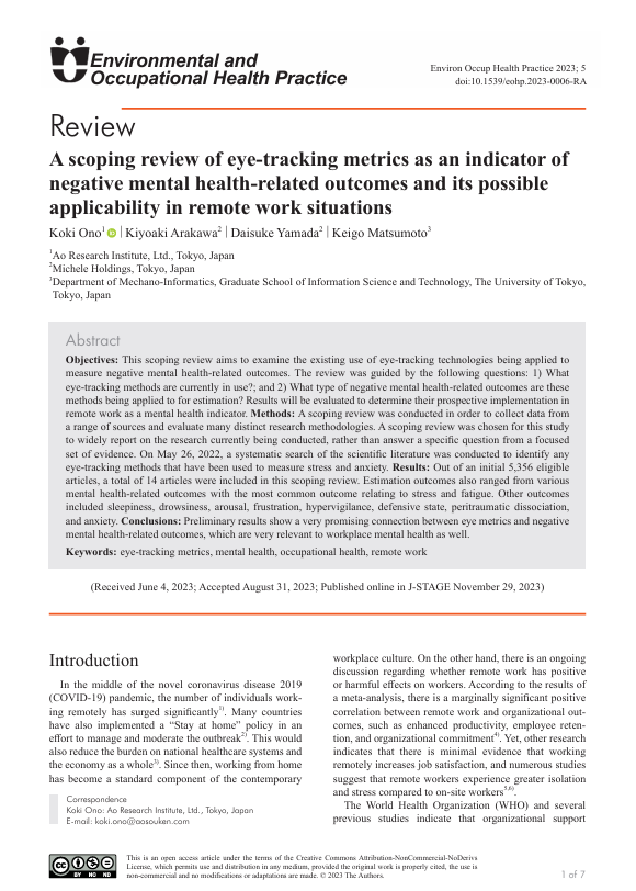A scoping review of eye-tracking metrics as an indicator of negative mental health-related outcomes and its possible applicability in remote work situations