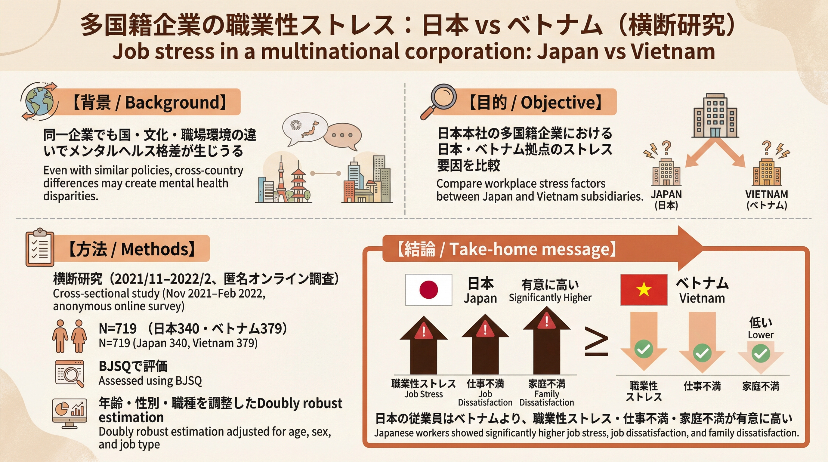 They found that while both genders were equally affected by work-related stress, leading to highest age-standardized suicide rates among “managers”, more than half of men's suicides were caused by professional conflicts while that of women were caused by interpersonal reasons. Moreover, women committing suicide tended to be younger, unmarried and living alone, and were continuously employed for fewer years than men.