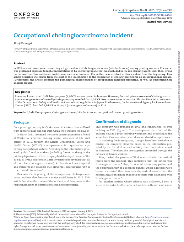 In 2012, Japan was shaken by a troubling discovery: several young workers at a small printing company developed a rare and deadly cancer of the bile ducts, known as cholangiocarcinoma. Many of them were only in their 20s to 40s—an age group in which this cancer is extremely uncommon. Could their workplace be the cause? This question triggered an investigation that would eventually reshape occupational health policies.